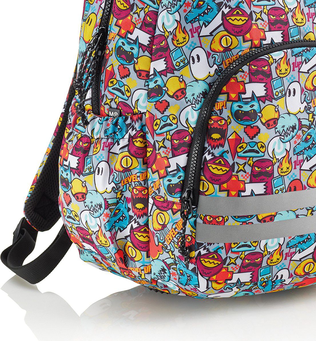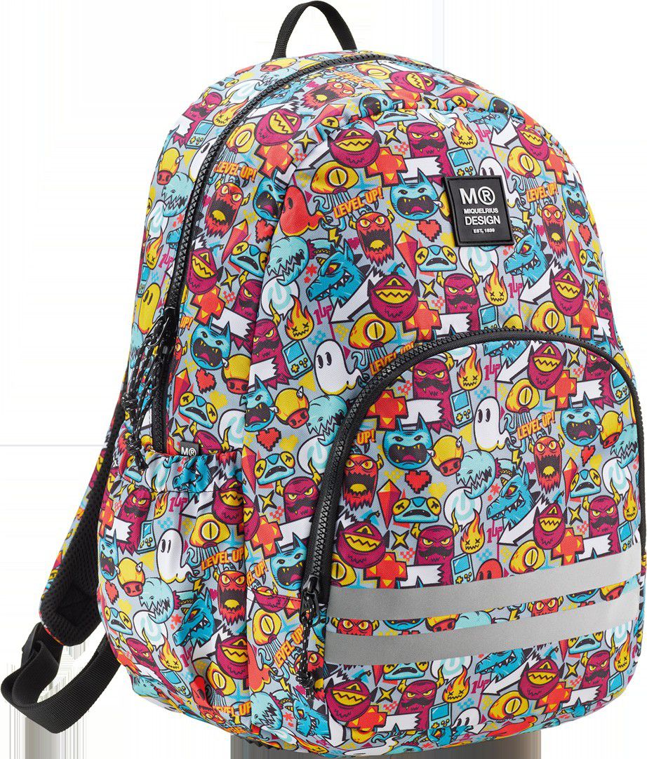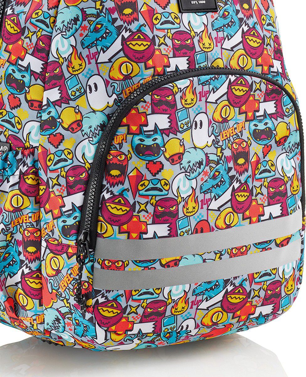 Moderní, lehký batoh v jemném barevném motivu určený začínajícím teenage klukům. Dělení na dvě kapsy poskytuje dostatek prostoru pro školu a osobní drobnosti. Recyklovaný odolný materiál prodlužuje životnost, zesílené výztuhy zespodu chrání batoh před poškozením a znečištěním.