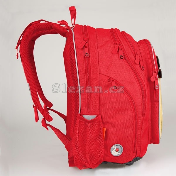 Tříkomorový školní batoh. Zadní část batohu je polstrovaná a výztuhu zde tvoří vyjímatelný hliníkový rám. Celý nosný systém je pak doplněn o kvalitní dvoj-nastavitelné ramenní popruhy. Plastové držadlo nad hlavní komorou usnadňuje přenášení a nabízí možnost zavěšení batohu na školní lavici. Vnitřní část batohu má tři komory, jednu přední kapsu s motivem ducha a dvě postranní úložné kapsičky. Nechybí zde ani jednoduchý organizér (prostřední komora), štítek se jménem (přední komora) a boční sítová kapsa pro láhev s nápojem . Spodní strana batohu je vyrobena z pevného materiálu, opatřena plastovými nožkami a je polstrovaná. Vysoký důraz je opět kladen na obvodové reflexní prvky batohu.