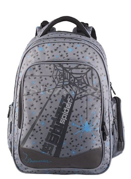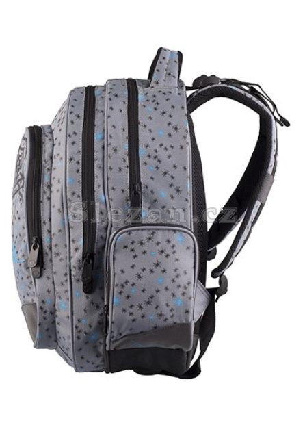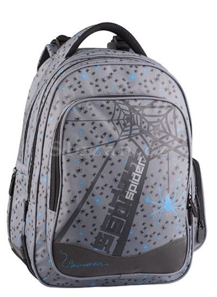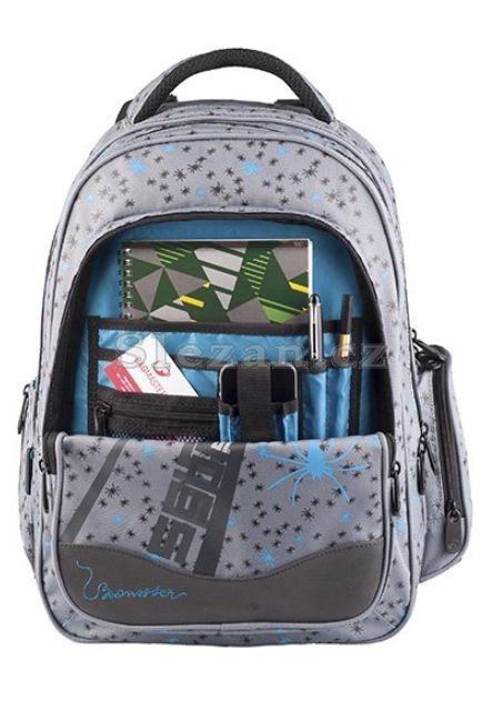 Dvoukomorový školní batoh s jednou velkou přední kapsou na zip.