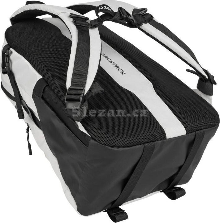 - ZÁDOVÝ SYSTÉM – síťovaný zádový panel, prodyšný a pohodlný, chrání páteř a ulevuje od tlaku způsobeného váhou