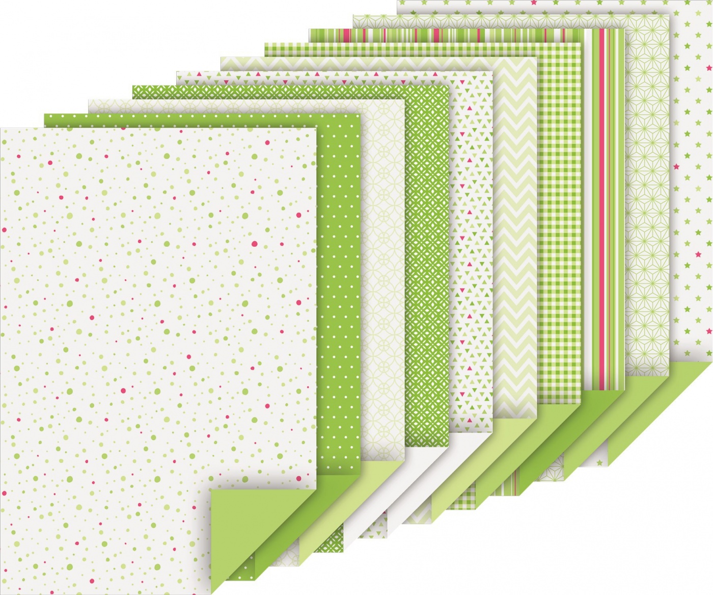 Blok barevných papírů s motivy, zelený mix