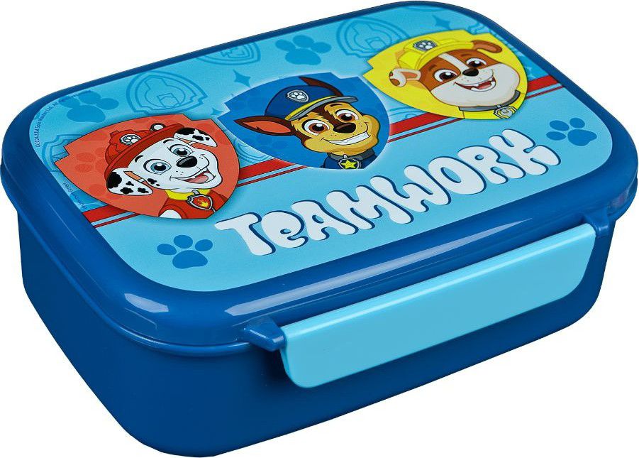 Plastová krabička na svačinu s motivem Tlapkové patroly, uvnitř s rozdělovací přepážkou.
