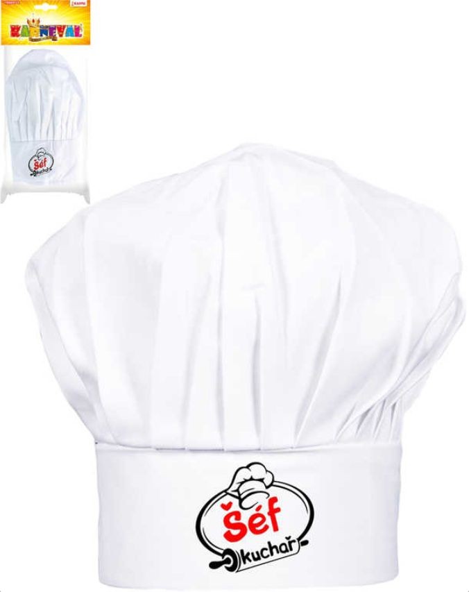 Bílá kuchařská čepice pro dospělé s nápisem Šéf kuchař je praktickým doplňkem do každé kuchyně.