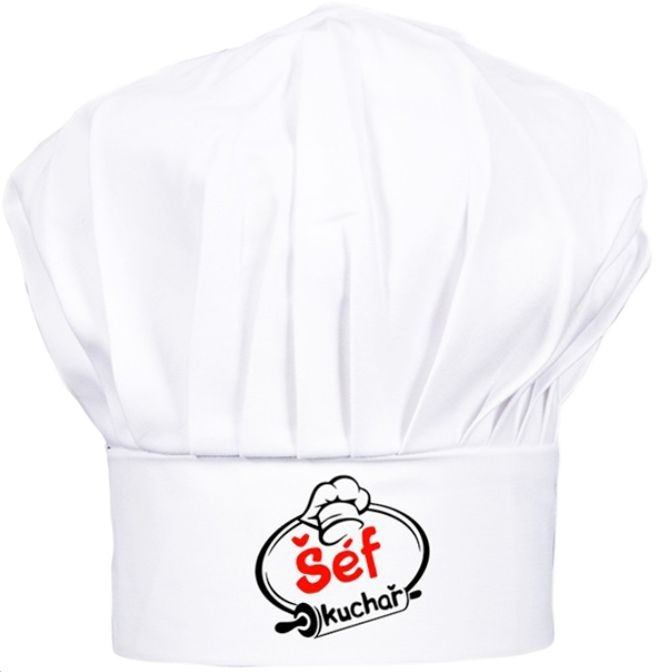 Senzační kuchařská čepice s nápisem Šéf kuchař je praktickým doplňkem do každé kuchyně.