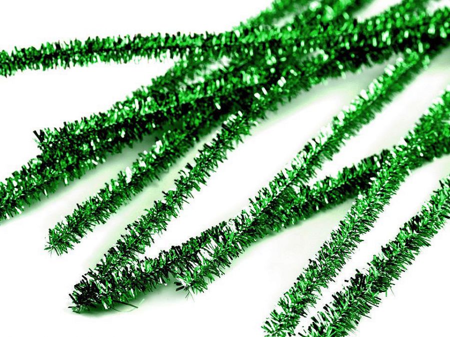Chlupaté drátky na tvoření lurexové 6 mm délka 30 cm 2 zelená trávová, 20 ks