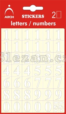 Čísla 0-9, výška 14 mm - 2 archy v blistru bílé