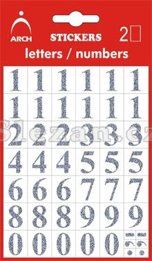Popis Čísla 0-9, výška 14 mm - 2 archy v blistru stříbrné