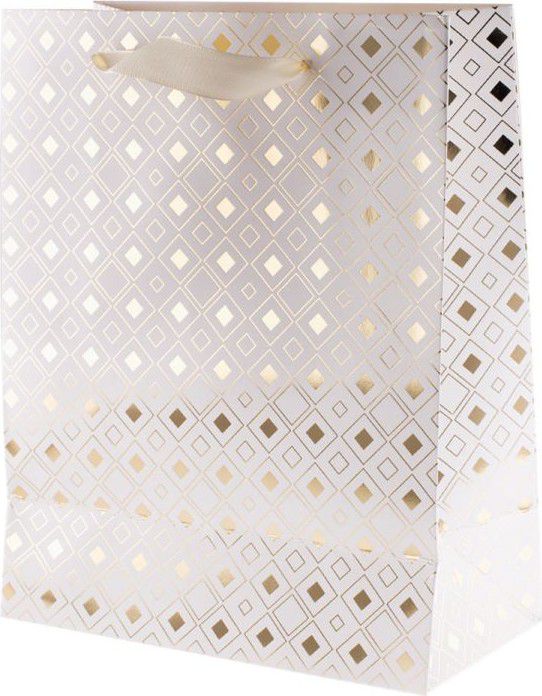 Bílá dárková taška s metalickým potiskem.