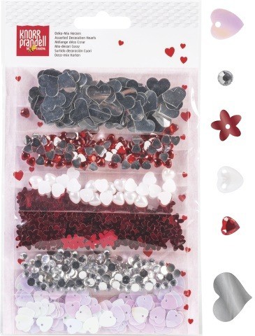 Dekorace 6 druhů - Srdce červené/stříbrné