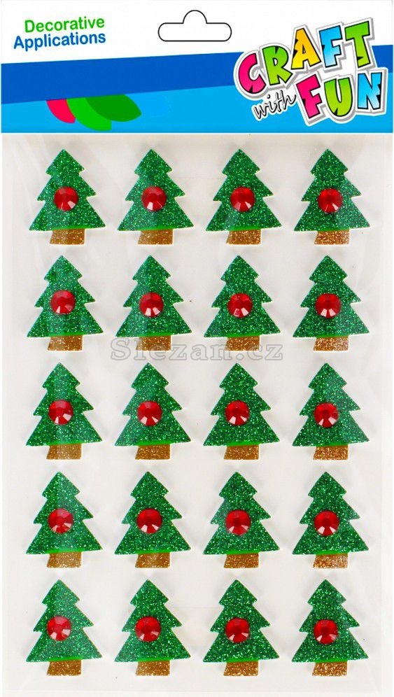 Dekorace samolepící vánoční stromek glitr 20 ks