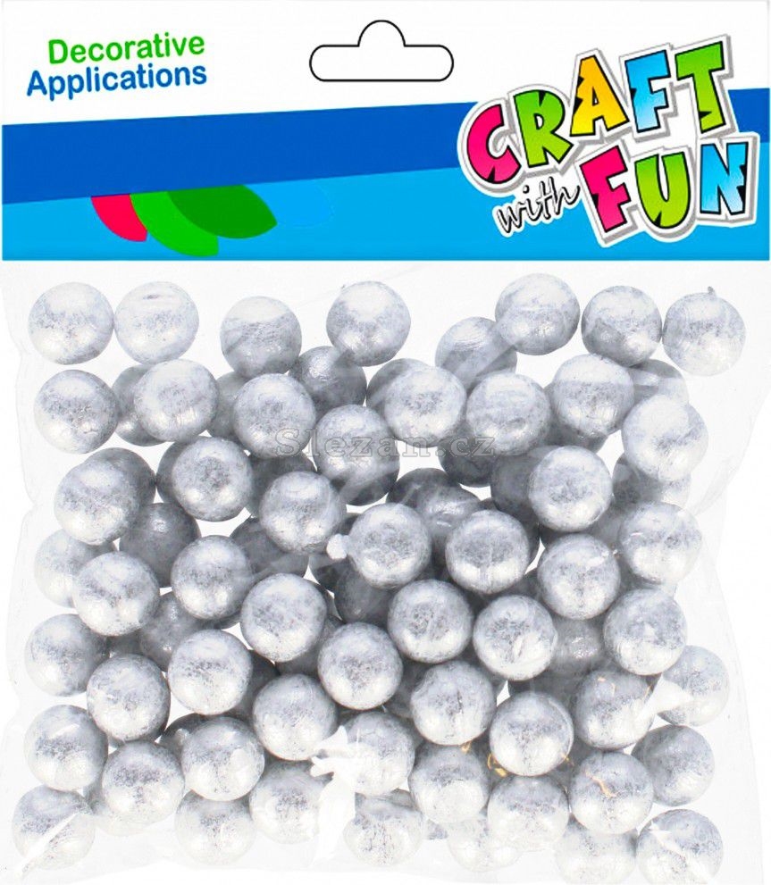 Polystyrénové koule od CRAFT WITH FUN jsou ideální pro umění decoupage a další kreativní dekorace. Pěnový polystyren vytváří zajímavý efekt v různých typech plastikářských prací. Tento výrobek používejte ve spojení s dalším příslušenstvím a sadami ze série Craft With Fun Balení obsahuje 5g 1,5cm stříbrných polystyrénových kuliček. Určeno pro děti od 3 let. Baleno ve fólii s ramínkem. Rozměry balení š x v cm: 15x15, hmotnost kg. 0,006.