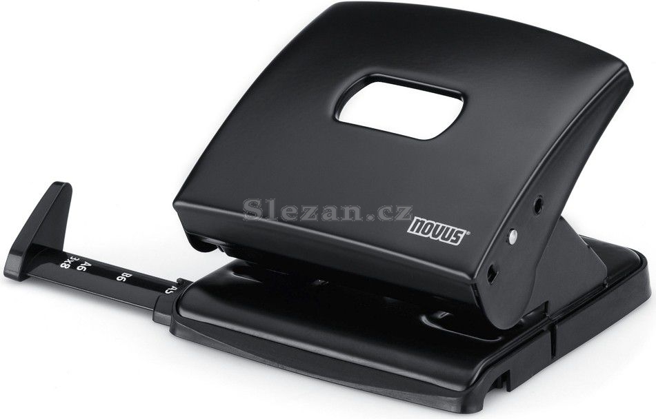 Klasická kancelářská děrovačka pro každý psací stůl. Potištěné posuvné pravítko pro snadné formátování. Dělené výklopné dno z měkké pryže usnadňuje manipulaci s odpadem. Kovový spodní díl a plastový horní díl.