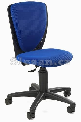 Výškově stavitelná židle pomocí plynového pístu a s výškově nastavitelnou bederní opěrkou.