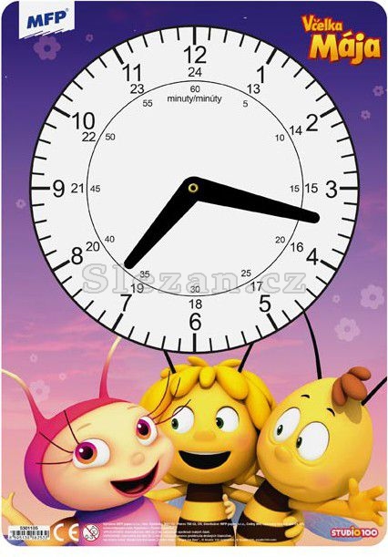 Dětské papírové hodiny se včelkou Májou. Didaktická pomůcka, dobře využitelná k výuce času u dětí předškolního věku nebo u prvňáčků. Tyto cvičné hodiny nesmí chybět Vašemu dítěti při nástupu do první třídy základní školy. Upozornění: Nevhodné pro děti do 3 let. Nebezpečí vdechnutí a spolknutí malých částic. Uvedená cena je za 1 ks. Dodáváme v mixu dle skladové zásoby ve 4 různých variantách