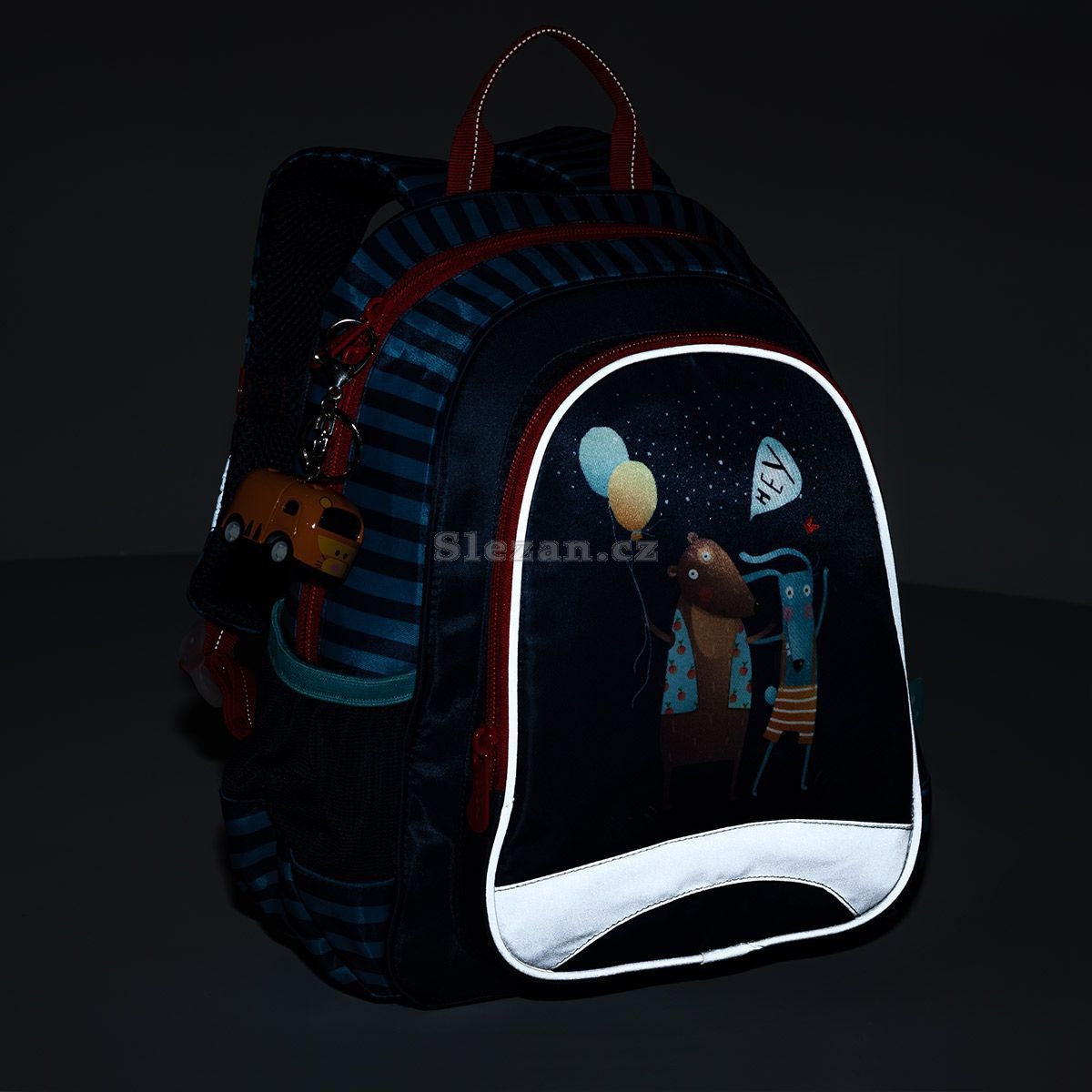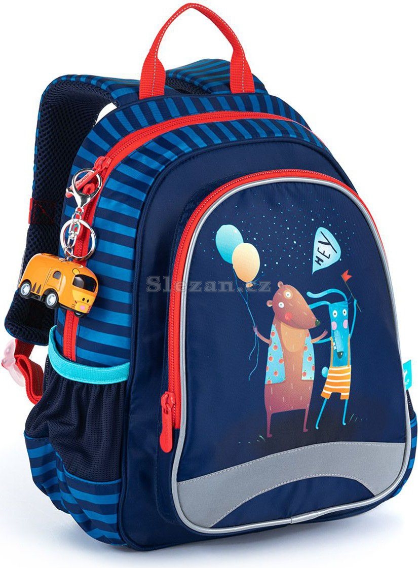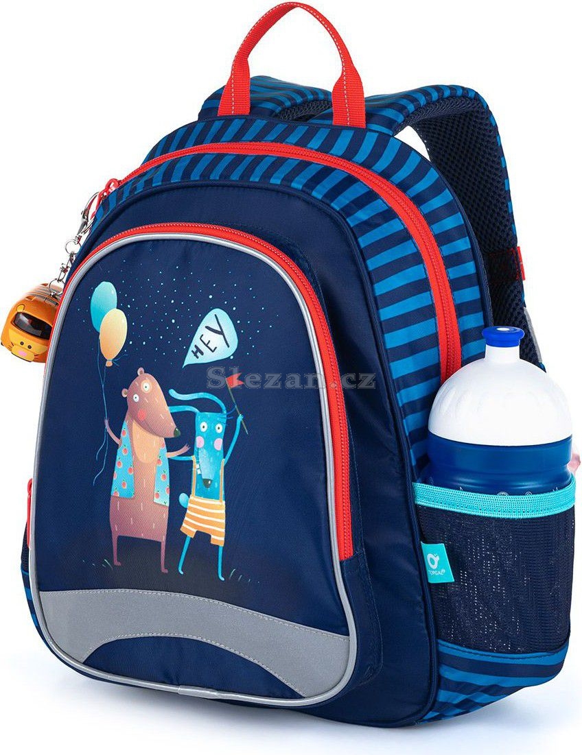 Dětský batůžek vhodný pro děti od dvou let se hodí na výlety, do kroužků, do školky i k babičce. Dobře ale poslouží i malým školákům na školní výlety (velikost A4 se do něj ale nevejde). Batoh má jednu hlavní komoru se jmenovkou, prostornou přední kapsu na zip a dvě malé postranní elastické kapsičky vhodné např. na lahev s pitím.