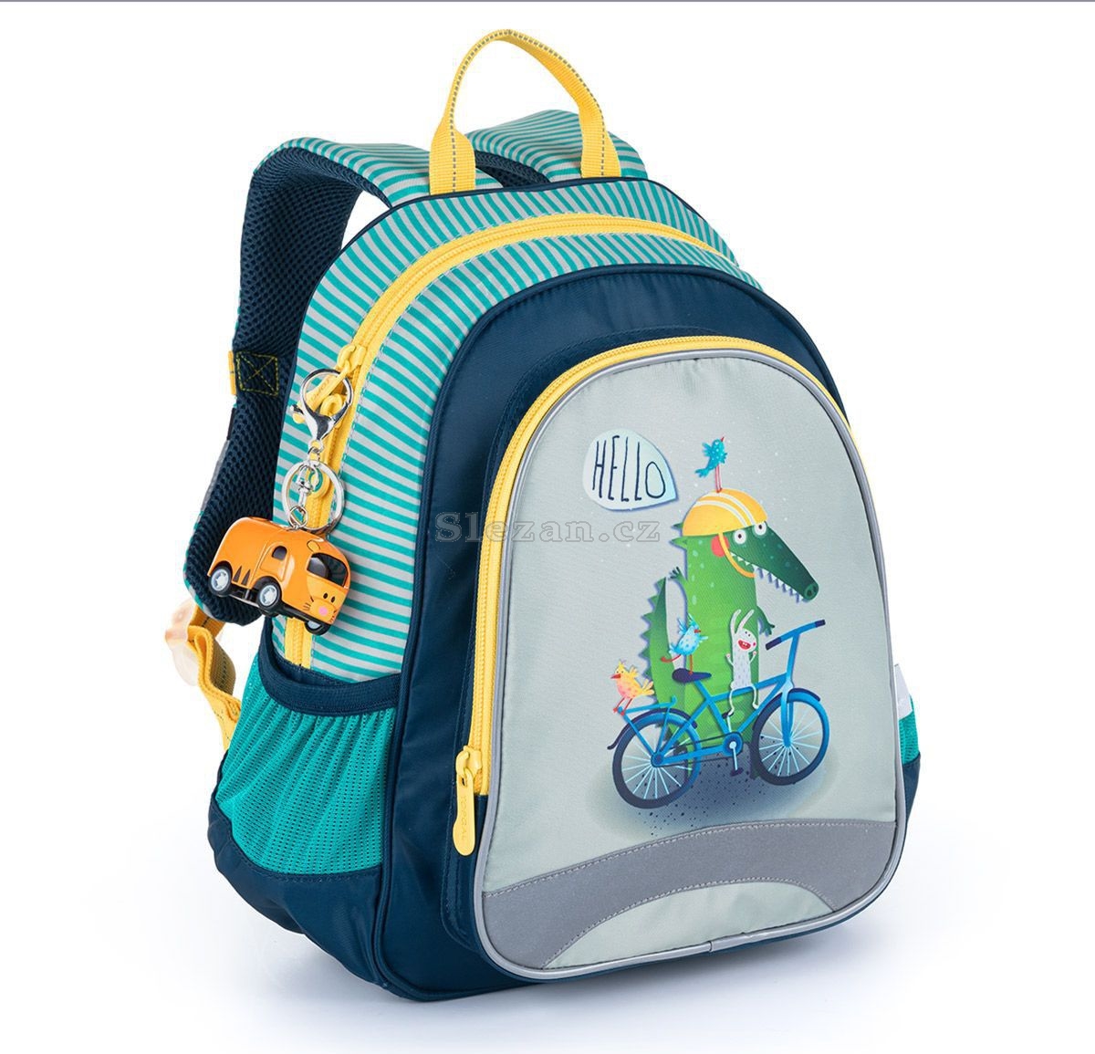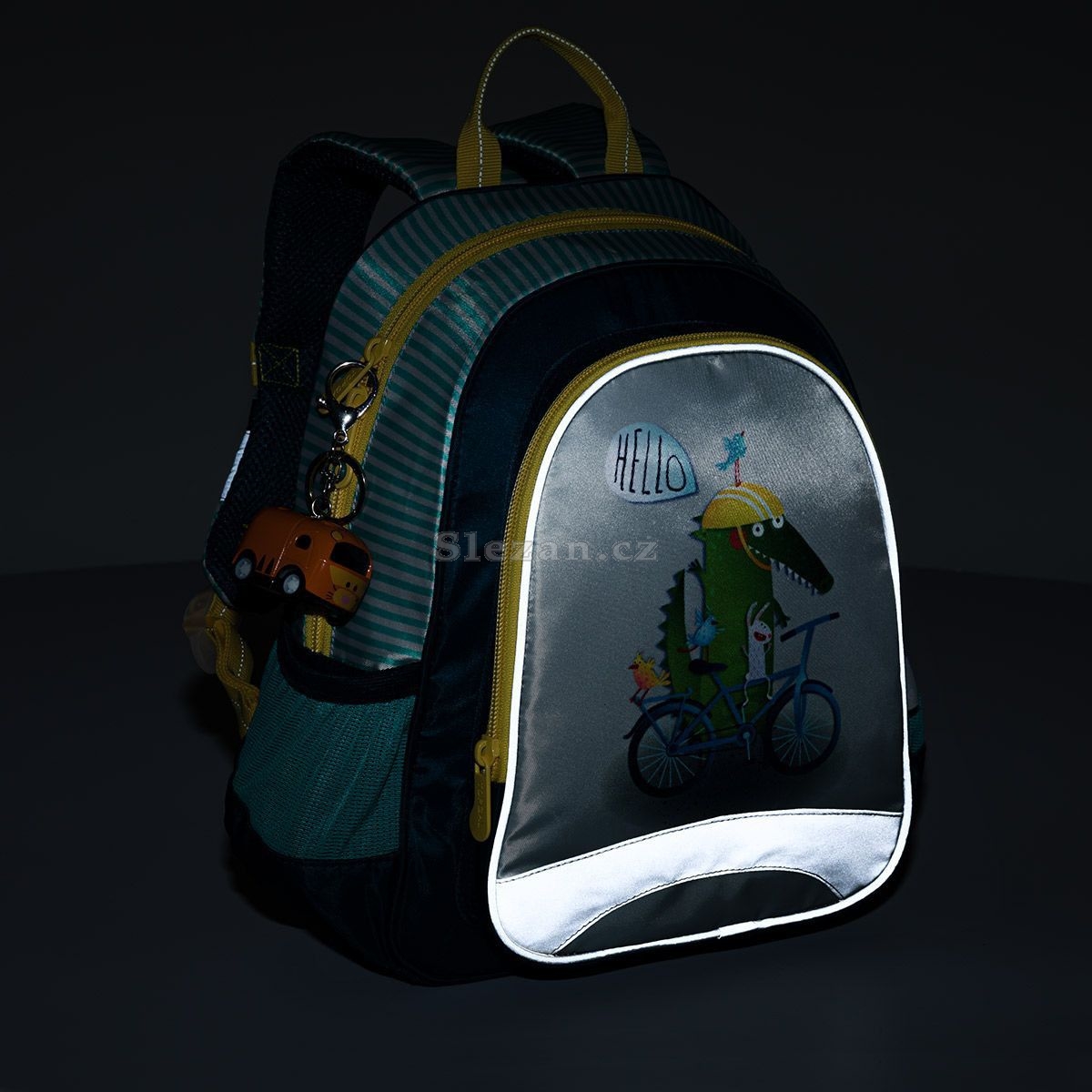 Dětský batůžek vhodný pro děti od dvou let se hodí na výlety, do kroužků, do školky i k babičce. Dobře ale poslouží i malým školákům na školní výlety (velikost A4 se do něj ale nevejde). Batoh má jednu hlavní komoru se jmenovkou, prostornou přední kapsu na zip a dvě malé postranní elastické kapsičky vhodné např. na lahev s pitím.