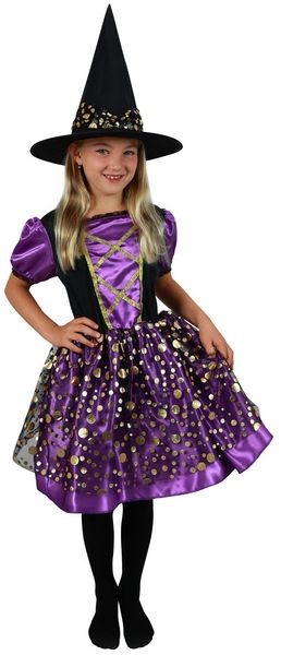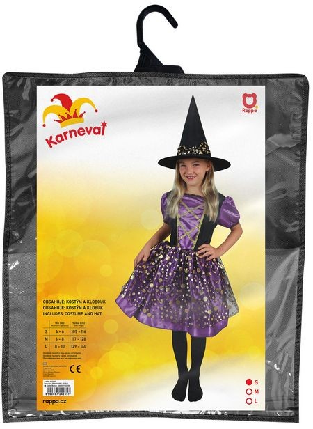Popis Dětský kostým čarodějnice, fialovo-černá(S)
