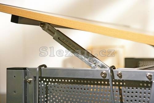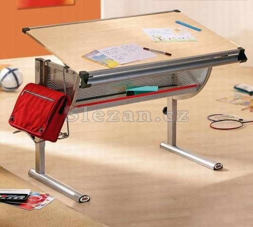 Rostoucí stůl obsahuje držák a háček na tašku, stojan na knihy a další pomůcky pro okamžité zabydlení dítěte u jeho nového stolu. - pracovní deska z MDF - provedení javor - kovová, šedě lakovaná konstrukce s černými aplikacemi - nastavení výšky pracovní plochy - nastavení sklonu pracovní plochy až na 45 stupňů - pevný záchytný žlábek pro psací potřeby - kovové pravítko (0-100 cm), které zamezuje sjíždění předmětů (papírů) ze stolu při náklonu pracovní desky - držák na aktovky a háček - polička na knihy Rozměry: - výška stolu 62 - 93 cm - šířka pracovní plochy 117 cm - hloubka pracovní plochy 68 cm
