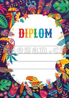 Barevný diplom s motivy tukanů v mexickém stylu potěší každého kluka a holku.