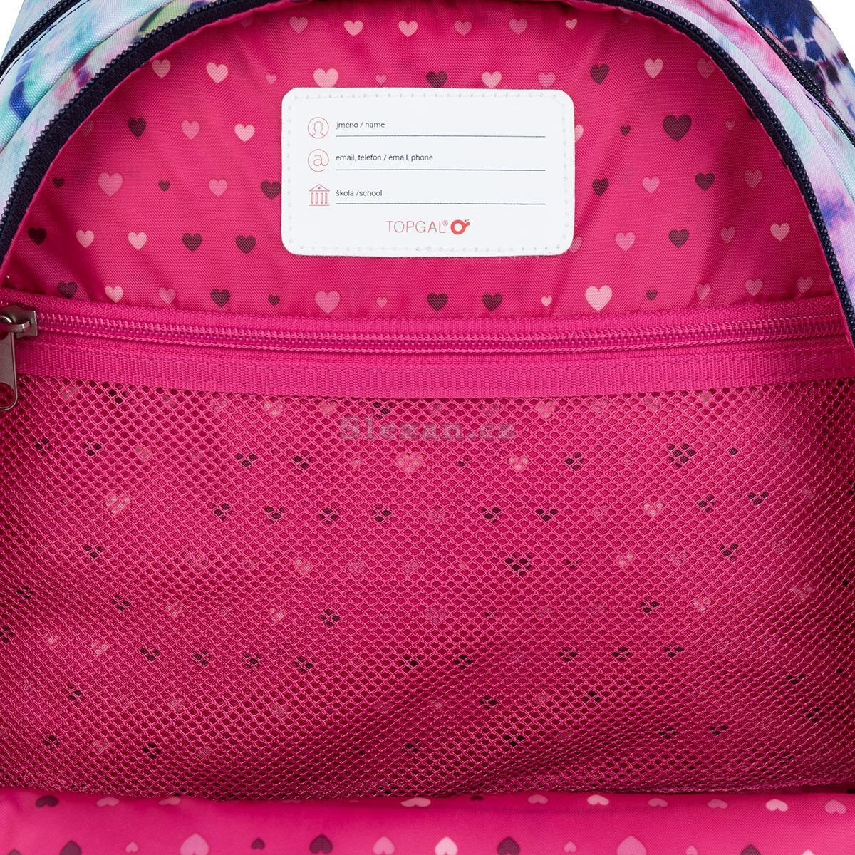 Zadní komora batohu je o užší a najdete v ní i menší síťovou kapsu na zip. Přední komora je širší, velmi objemná a je rozdělena polstrovanou přepážkou na dvě části. Hluboká kapsa na přední komoře je jako stvořená pro penál ve stejném designu nebo krabičku se svačinou.