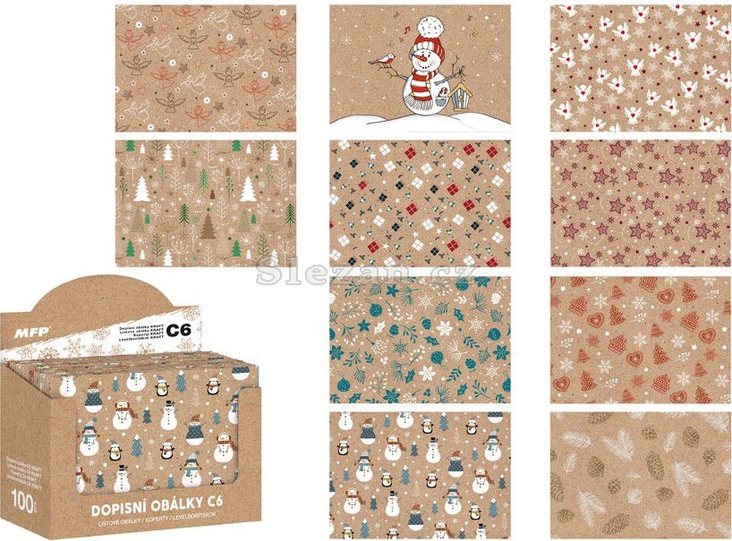 Celoplošně potištěné, vánoční, dopisní obálky C6 (KRAFT). Posíláte rádi dopisy? Pořiďte si u nás tyto krásné dopisní obálky a nezapomeňte si u nás také koupit dopisní papír a propisku!
