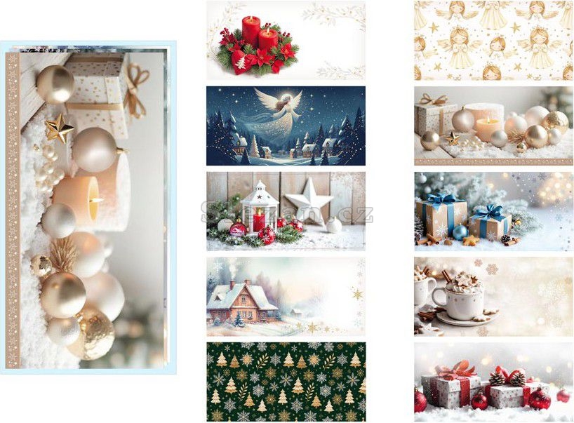Vánoční dopisní obálka MFP DL – mix motivů Dodejte svým vánočním přáním skutečně elegantní podobu. Tato vánočdopisní ní obálka DL je ideální pro novoročenky, přání i dárkové poukazy, které chcete předat slavnostně a originálně. Je k dispozici v několika vánočních motivech – od kouzelných zimních krajin a andělíčků až po moderní dekorace s ozdobami a svátečně zabalenými dárky. Vyrobena z pevného papíru s vyšší gramáží, takže ochrání vložený obsah a zároveň zvýrazní výjimečnost vašeho přání. Skvěle se hodí pro rodinu i firemní použití, kdy chcete zapůsobit stylově a s vkusem. BALENÍ OBSAHUJE: - 20 ks vánočních obálek (10 motivů) Motiv: vánoční Gramáž: 170 g/m2 Obálky jsou uloženy v plastovém sáčku. Dodáváme v mixu 10 motivů dle aktuální skladové zásoby. Uvedená cena je za 1 ks.