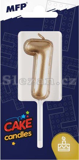 Dortová svíčka balonek ve tvaru čísla 1 ve zlaté barvě.