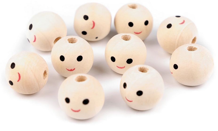 Dřevěné korálky s malovaným obličejem.