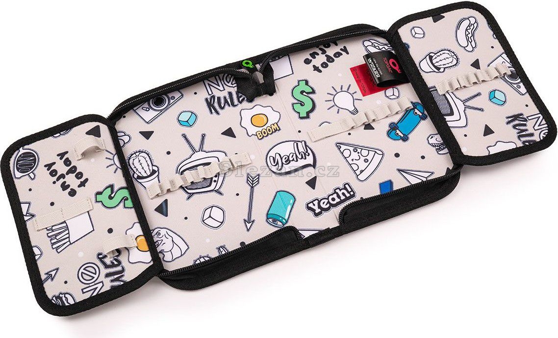 Penál je polstrovaný, takže spolehlivě ochrání všechny psací potřeby.