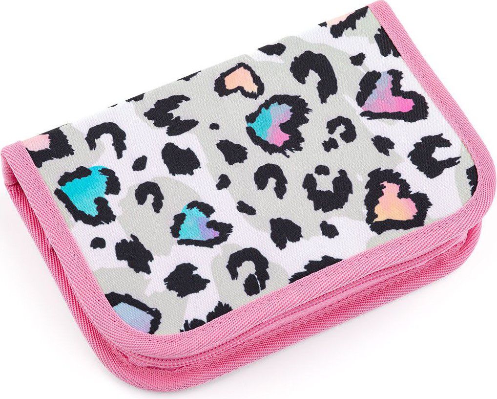 Jednopatrové školní pouzdro se dvěma klopami. Díky gumovým úchytům se do nich vejde celkem dvacetjedna pastelek, tužek a fixek. Tři širší úchyty poslouží na pravítko, kružítko či nůžky. Dva větší na gumu a ořezávátko.