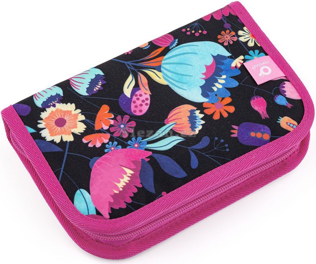 Jednopatrové školní pouzdro se dvěma klopami. Díky gumovým úchytům se do nich vejde celkem dvacetjedna pastelek, tužek a fixek. Tři širší úchyty poslouží na pravítko, kružítko či nůžky. Dva větší na gumu a ořezávátko.