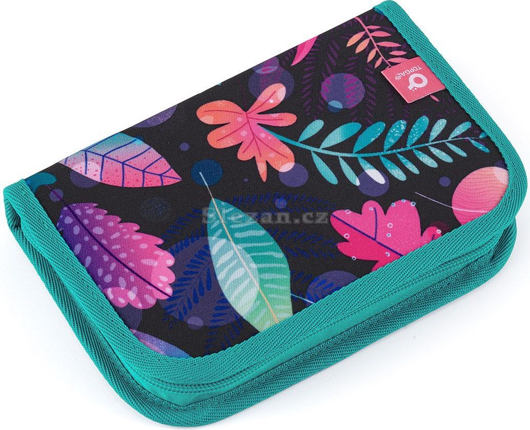 Jednopatrové školní pouzdro se dvěma klopami. Díky gumovým úchytům se do nich vejde celkem dvacetjedna pastelek, tužek a fixek. Tři širší úchyty poslouží na pravítko, kružítko či nůžky. Dva větší na gumu a ořezávátko.