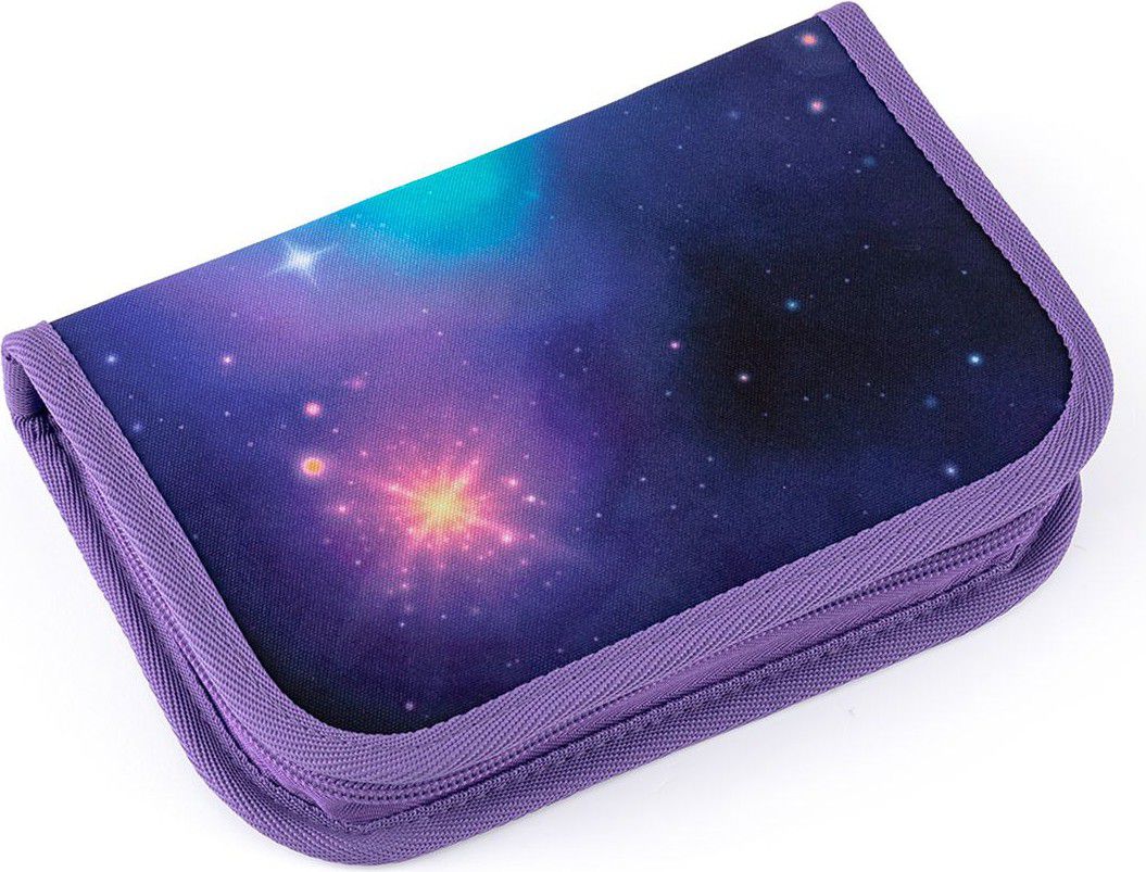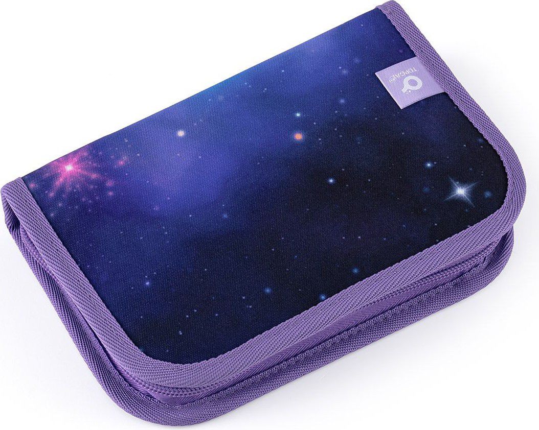 Jednopatrové školní pouzdro se dvěma klopami. Díky gumovým úchytům se do nich vejde celkem dvacetjedna pastelek, tužek a fixek. Tři širší úchyty poslouží na pravítko, kružítko či nůžky. Dva větší na gumu a ořezávátko.