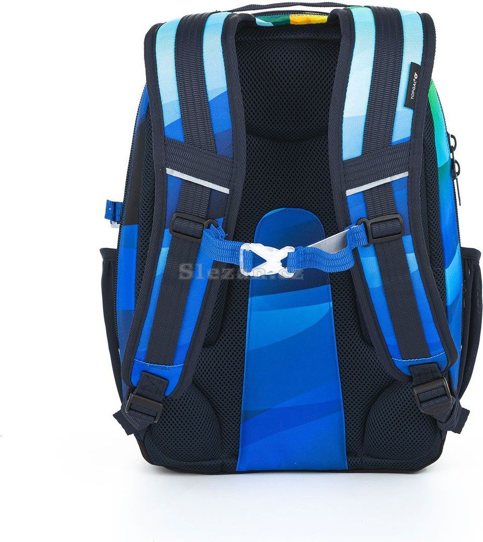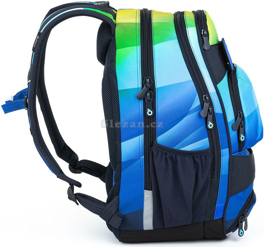 YUMI, stálice mezi studentskými střihy letos v modro zelených barvách na tmavě modrém základu. Batoh doporučujeme od druhého stupně ZŠ, nebo od 150 cm výšky.