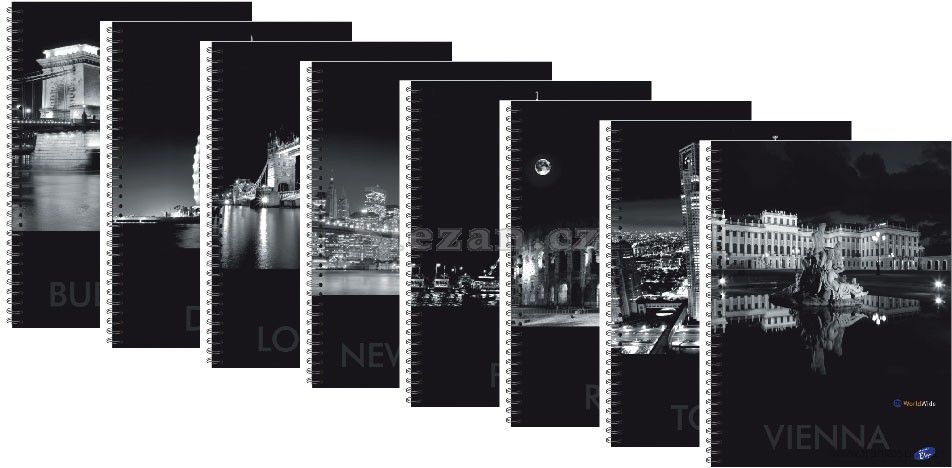 černobílé fotografie světových metropolí tvoří kolekci obalů