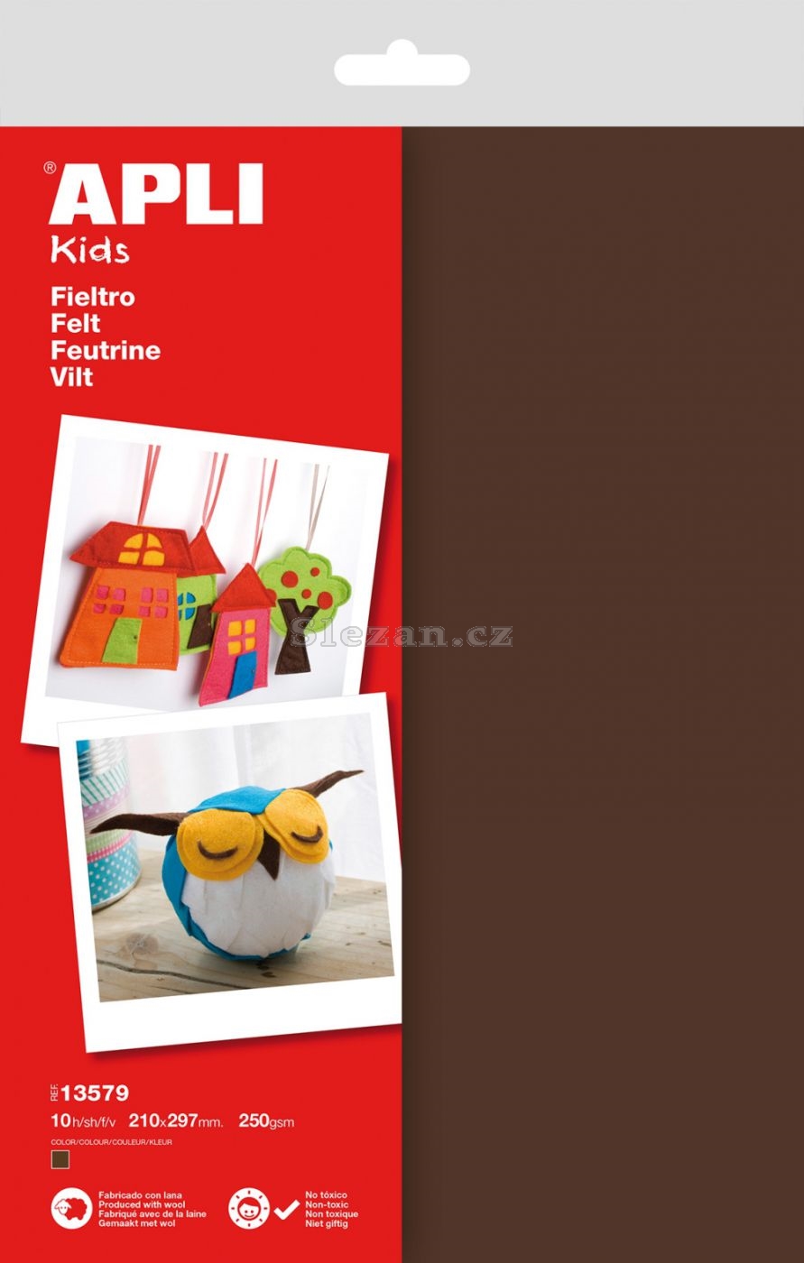 Filc - vysoce kvalitní materiál vhodný svým složením pro výtvarnou činnost dekoratérů, tak školní aktivity. Měkký a odolný materiál - obsahuje 40 % přírodní vlny, díky čemuž je výborně tvarovatelný. 100% recyklovatelný. Formát: 210 x 297 mm. Celkem 10 ks v balení. Vhodný pro děti od 3 let.