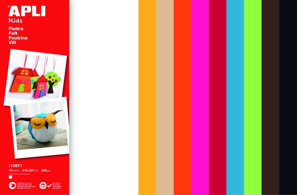 Filc - vysoce kvalitní materiál vhodný svým složením pro výtvarnou činnost dekoratérů, tak školní aktivity. Měkký a odolný materiál - obsahuje 40 % přírodní vlny, díky čemuž je výborně tvarovatelný. 100% recyklovatelný. Formát: 210 x 297 mm. Celkem 10 ks v balení. Vhodný pro děti od 3 let.