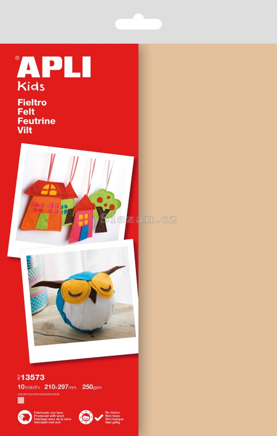 Filc - vysoce kvalitní materiál vhodný svým složením pro výtvarnou činnost dekoratérů, tak školní aktivity. Měkký a odolný materiál - obsahuje 40 % přírodní vlny, díky čemuž je výborně tvarovatelný. 100% recyklovatelný. Formát: 210 x 297 mm. Celkem 10 ks v balení. Vhodný pro děti od 3 let.