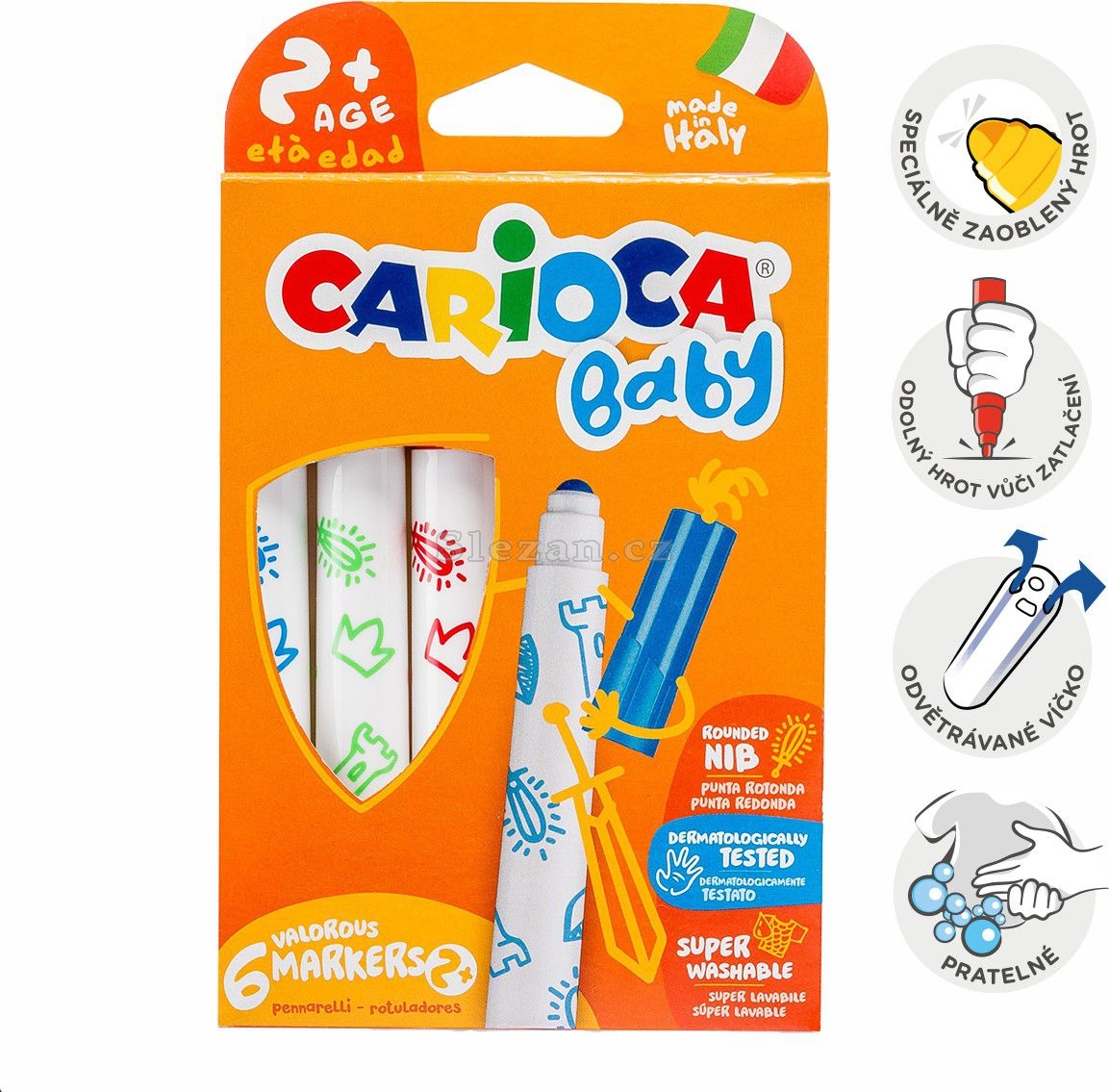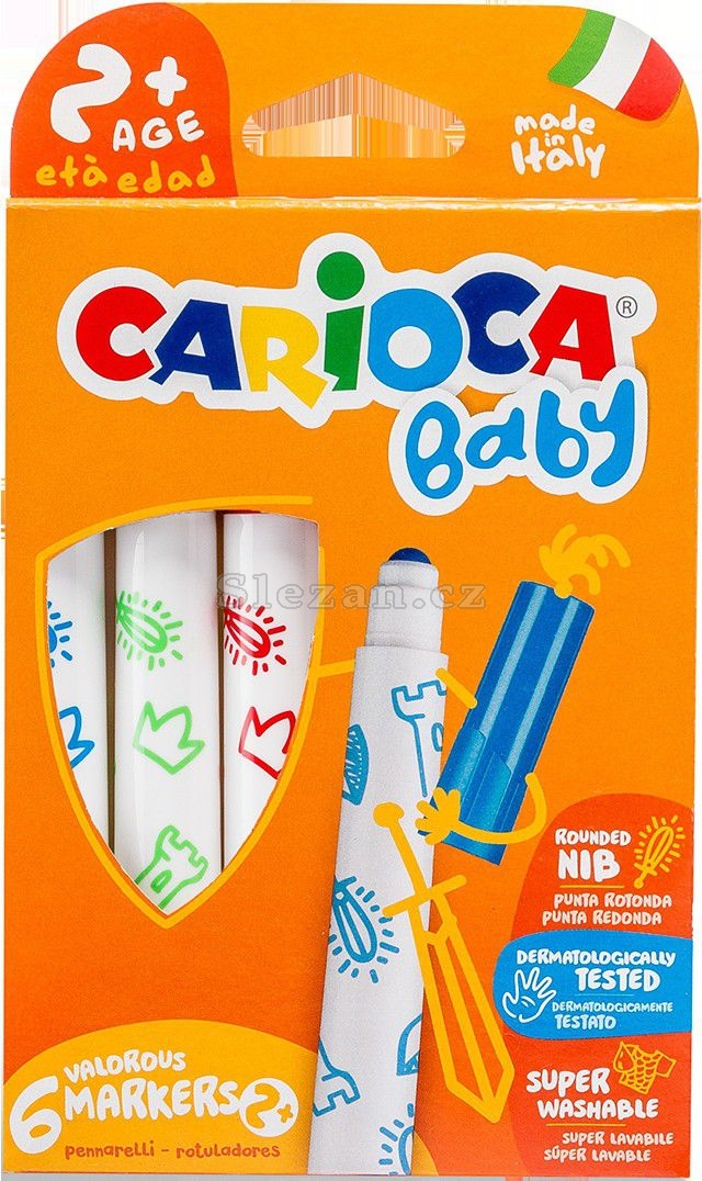 Perfektní společník pro děti od 24 měsíců, kteří objevují svět kreslení. Bezpečný zaoblený hrot je odolný proti vtlačení a odolá i tlaku dětských ručiček. Široké tělo umožňuje snadnou manipulaci a pohodlné vybarvování i větších ploch. Netoxický inkoust snadno odstraníte z pokožky a textilu vodou, takže se tvoření obejde bez starostí. Pro děti mladší 3 let doporučujeme dohled dospělých.