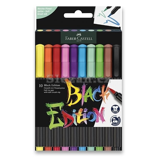 Vysoce kvalitní fix Faber-Castell Black Edition Brush se štětcovým hrotem ve standardních barvách. Měkký hrot ideální pro drobné kreslení, malování i krasopsaní. Snadná změna šířky tahu. Viditelnost na světlém papíře. Fixy vodou rozmývatelné.