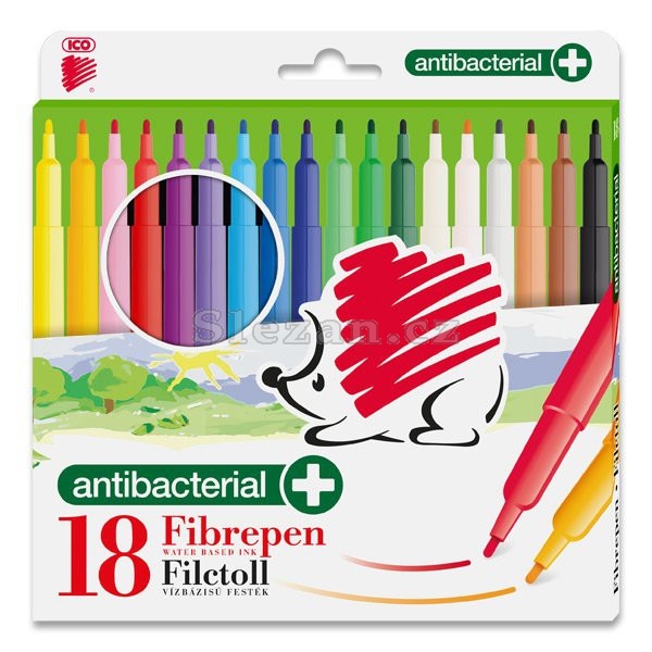 Antibakteriální dětské fixy ICO z plastu Biomaster, který pomáhá řešit problematiku hygieny dětských rukou a úst. Fixy jsou využitelné nejen v domácím prostředí, ale především v dětských kolektivech, kde se psací potřeby sdílejí.