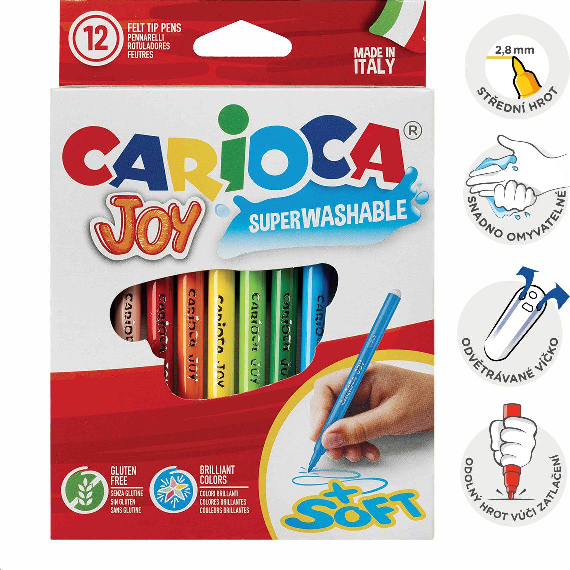 Kvalitní fixy se středně silným hrotem. Kulatý tvar těla pro snadné držení dětí. Vhodné na běžné kreslení, do škol nebo výtvarných kroužků. Nevhodné pro děti do 3 let.