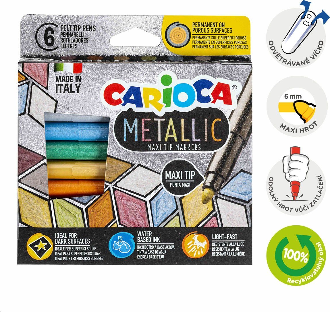 Fixy s metalickým efektem. Hodí se pro personalizaci předmětu jako jsou lahve, sklenice nebo jiné předměty. Odvětrávané víčko pro bezpečné užívaní. Vyrobeny z 56 % z recyklovaného plastu. Nevhodné pro děti do 3 let.