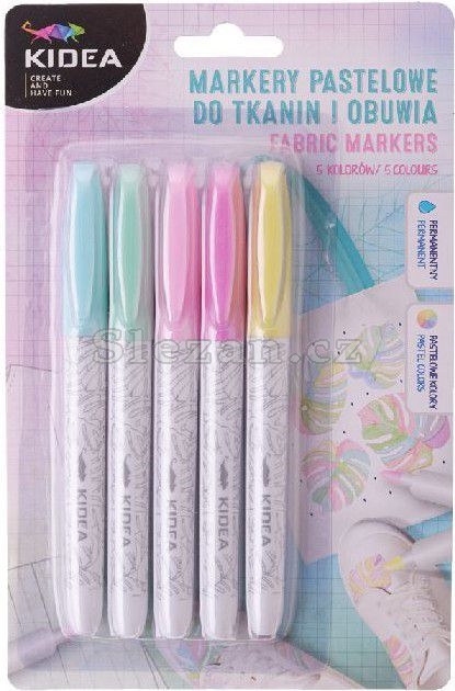 Chcete si změnit či oživit tričko, mikinu nebo boty? S těmito fixy je to možné! Módní pastelové barvy dodají vašemu oblečení a obuvi nový, jedinečný vzhled. Sada obsahuje 5 fixů v úžasných pastelových odstínech: modrá, růžová, sv.růžová, žlutá a zelená. Po vytvoření kresby počkejte 24 hodin, než úplně zaschne, po této době se ilustrace stanou trvalými a můžete snadno prát oblečení při 30 stupních Celsia. Dejte svým věcem druhý život. Balení: 5ks Cena je uvedena za 1balení.