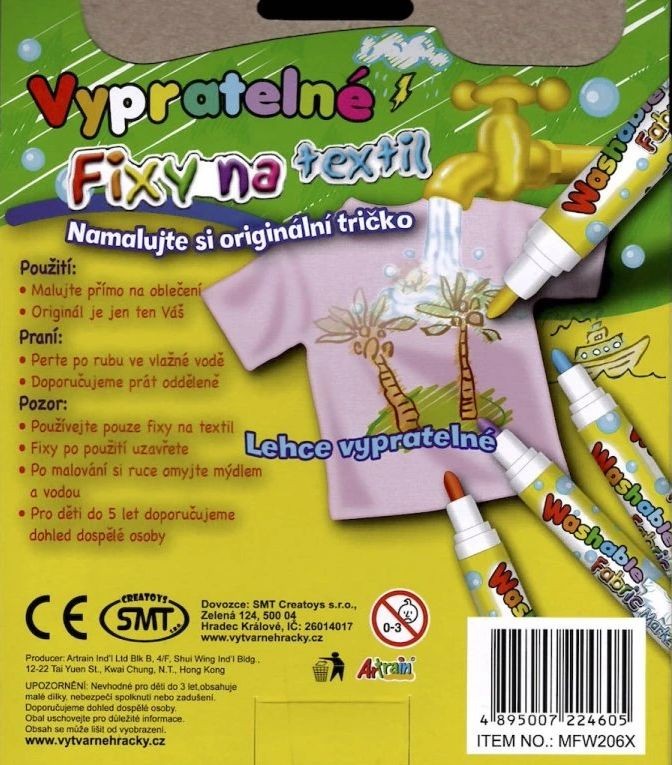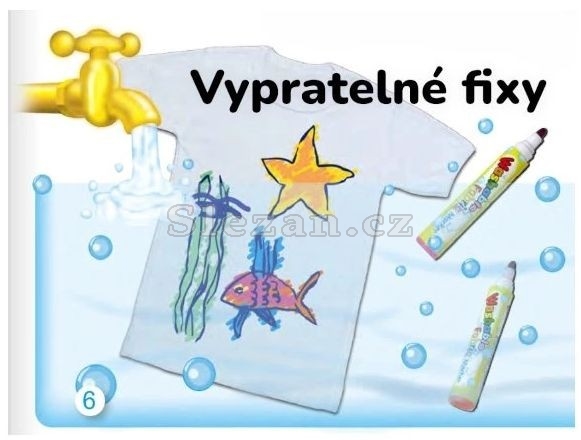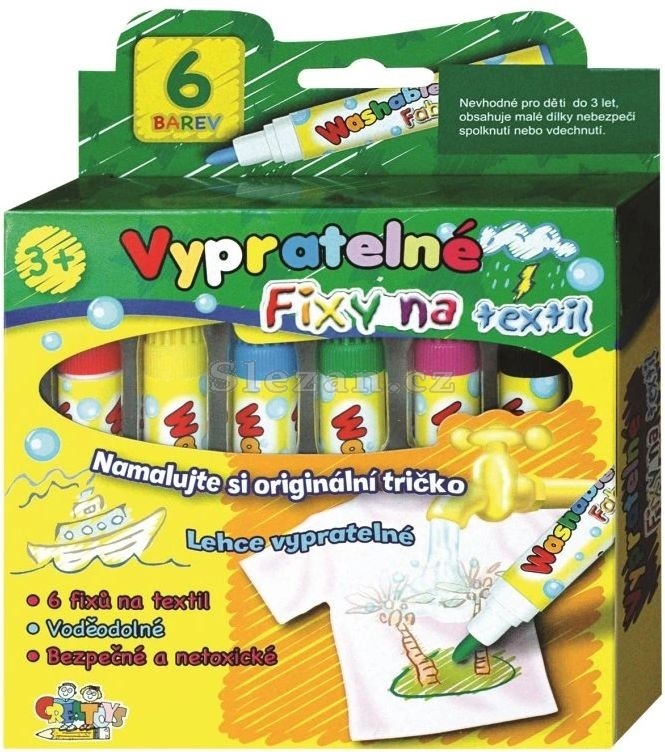 Postup: Nejdříve látku (případně tričko) vyperete, aby barvy lépe přilnuly. Víčko tahem otevřete. Mírným tlakem nanášejte barvu přímo na textil. Doporučujeme si obrázek předkreslit obyčejnou tužkou. Textil perte pouze po rubu ve vlažné vodě a odděleně.