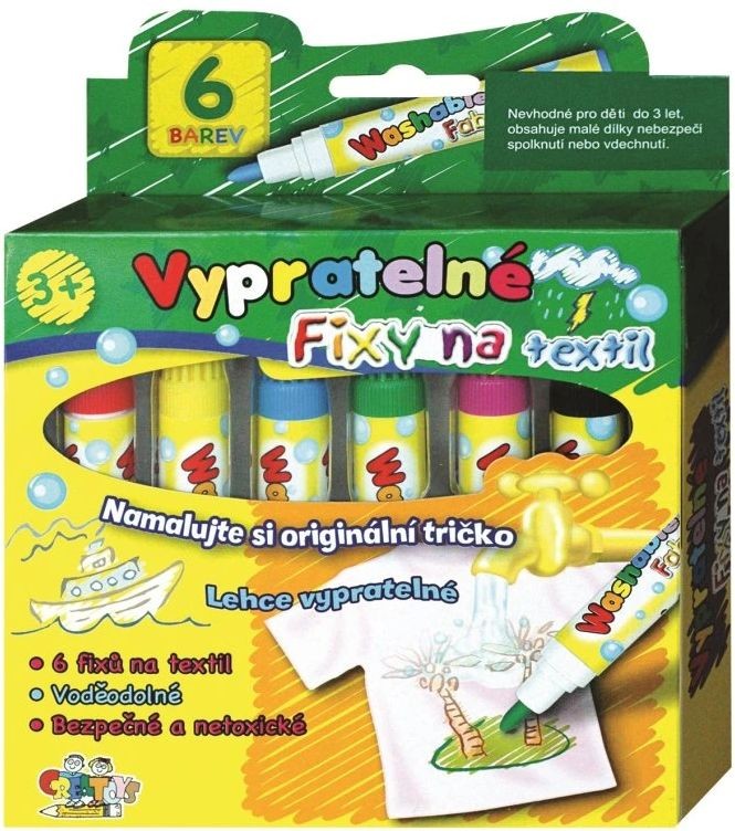 Balení obsahuje 6 ks fixů (červená, žlutá, modrá, zelená, růžová, černá) po 7 ml.