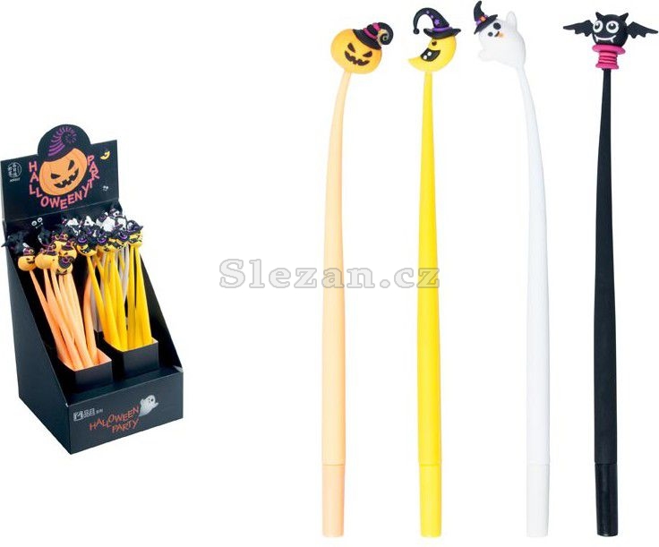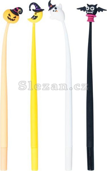 Zábavné gelové pero s halloweenskými motivy s modrou náplní.