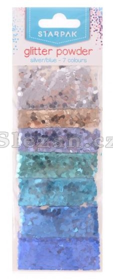 Popis Glitry sypké v sáčku stříbrné/modré, 7barev