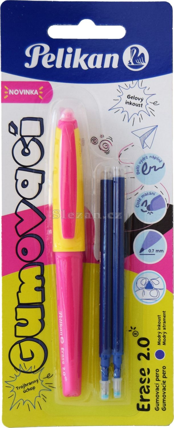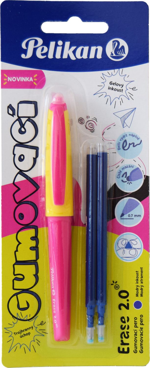 Gelové pero s trojhranným úchopem, se šířkou stopy 0.7mm, barva náplně modrá, s uzávěrem, materiál plast, inkoust gumovací, pro praváky i leváky, vyměnitelná náplň, 1 ks + 2 ks náplně na blistru