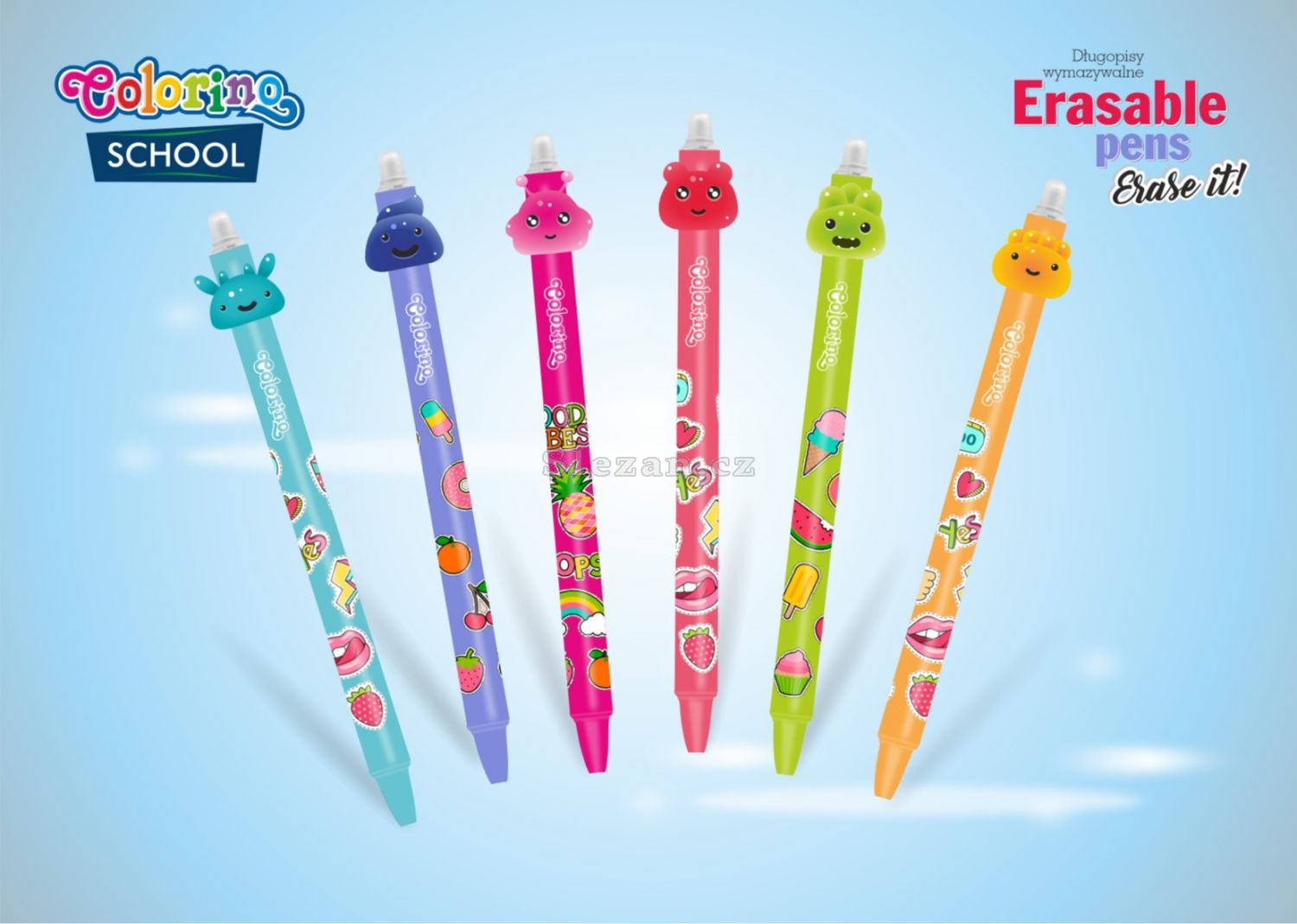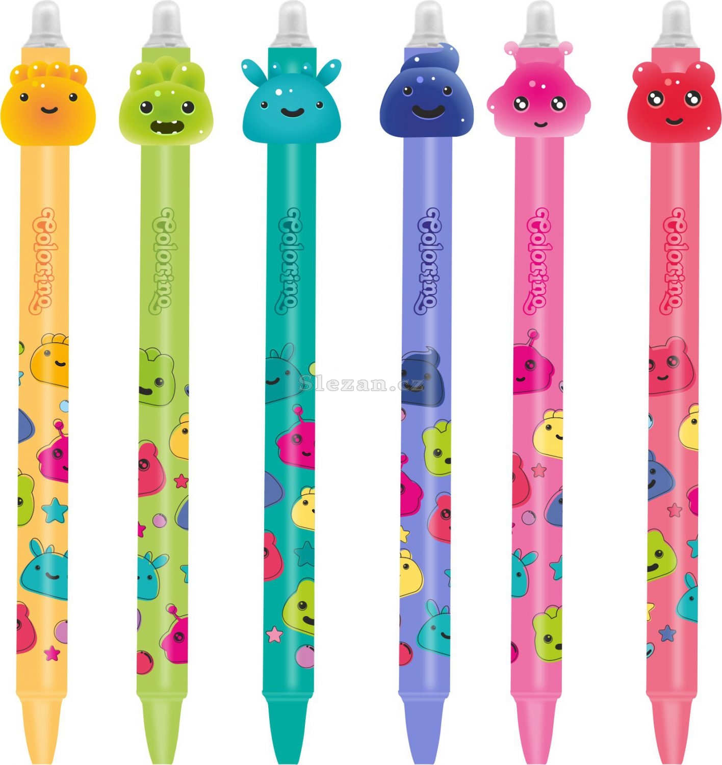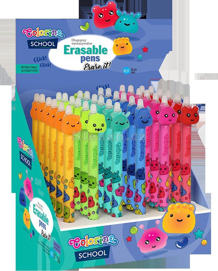 Praktická gumovatelná pera pro děti s měkkou koncovkou ve tvaru hlavičky. Kvalitní inkoust lze v případě potřeby jednoduše vygumovat a přepsat.